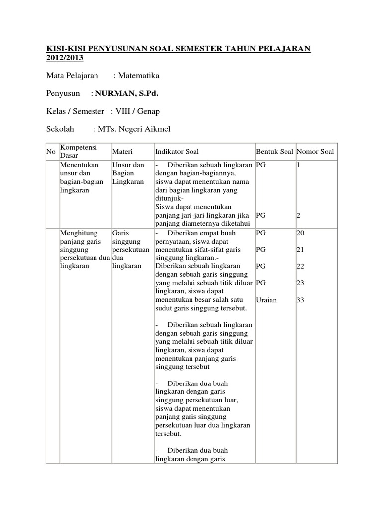 Soal ujian kelas 8 semester 1 2019 matematika kurikulum 2013. Jadi soal yang saya bagikan ini dapat digunakan sebagai bahan latihan dalam. Perangkat Pembelajaran K13 Kelas Xii Revisi 20182019 Lengkap Untuk Semua Mapel Contoh Kisi-Kisi Kartu Soal Uraian Dan Pilihan Ganda Pembuatan Soal Hots K13.
