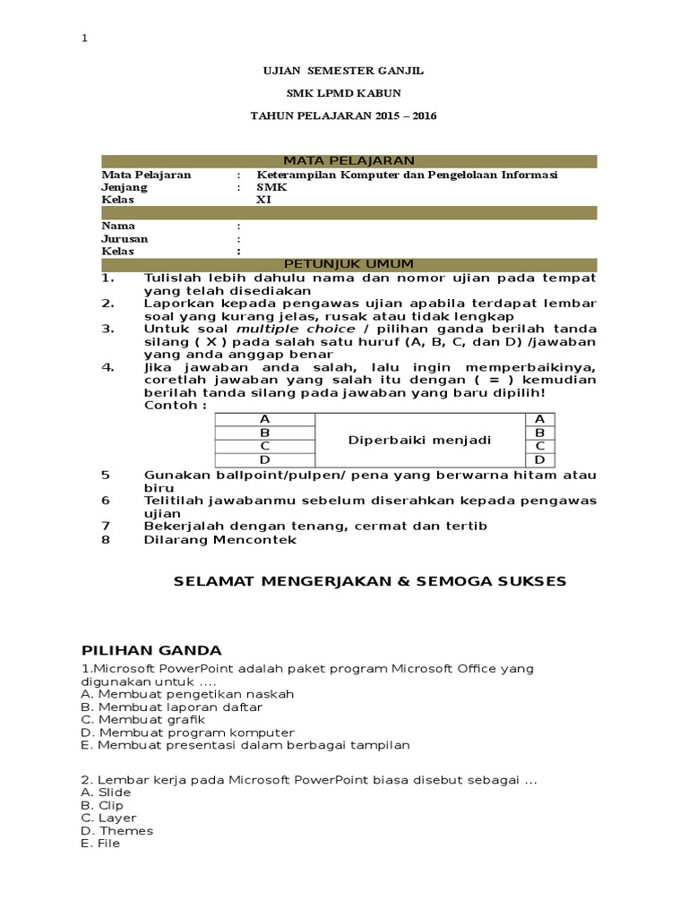 Guru sd smp sma contoh soal kkpi kelas xi smk beserta jawabannya. Berikut adalah Contoh Soal KKPI Lengkap dengan Jawaban Kelas XI Soal KKPI pilihan ganda satu hingga 50 soal Kalian juga dapat mengunduh File Contoh soal KKPI dan jawaban ini DISINI. Download soal uts ips kelas 6 semester 1 tahun 2015.