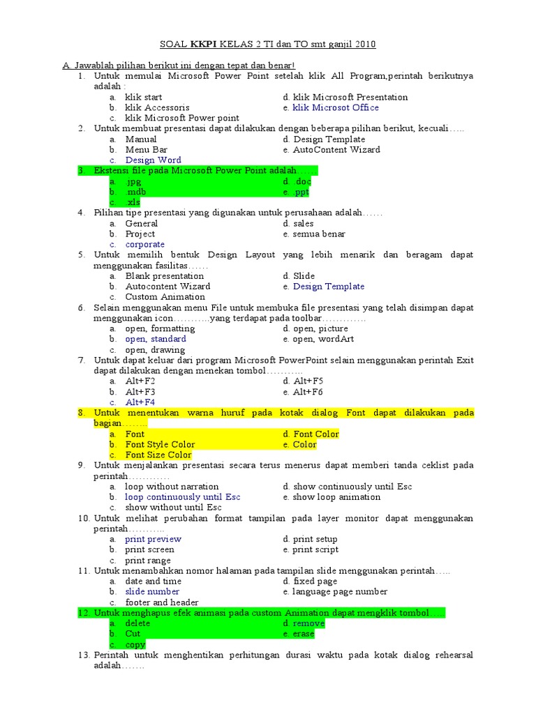 KUMPULAN SOAL-SOAL KKPI Mata pelajaran. Soal Kkpi Kelas Xii Semester 1 Beserta Jawabannya Ilmusosial Id. Untuk menghapus seluruh nama file yang berakhiran Doc dengan perintah.
