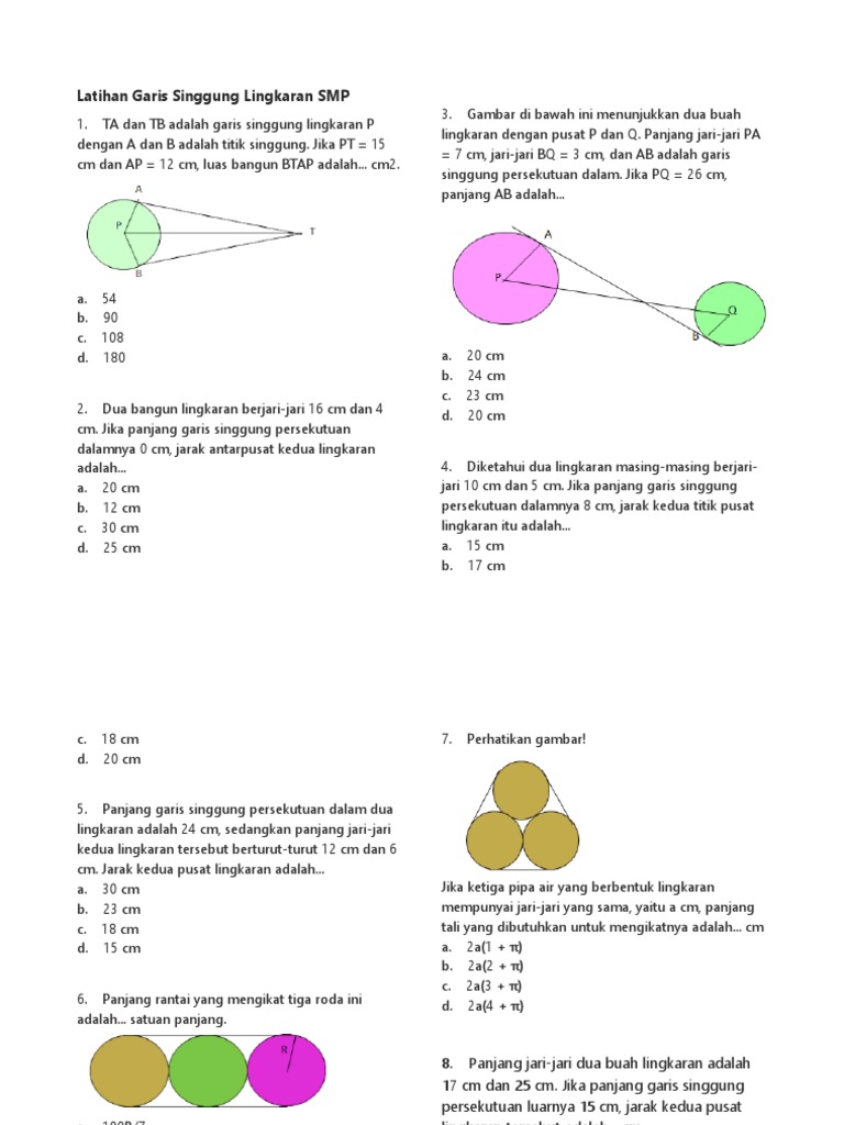 Garis singgung persekutuan dalam persekutuan luar dan sudut yang berkait dengan sifat garis singgung. Emas lebih berharga dari kayu. Contoh Soal Latihan Matematika Garis Singgung Lingkaran Kelas 8 Smp - Download as Word Doc doc docx PDF File pdf Text File txt.
