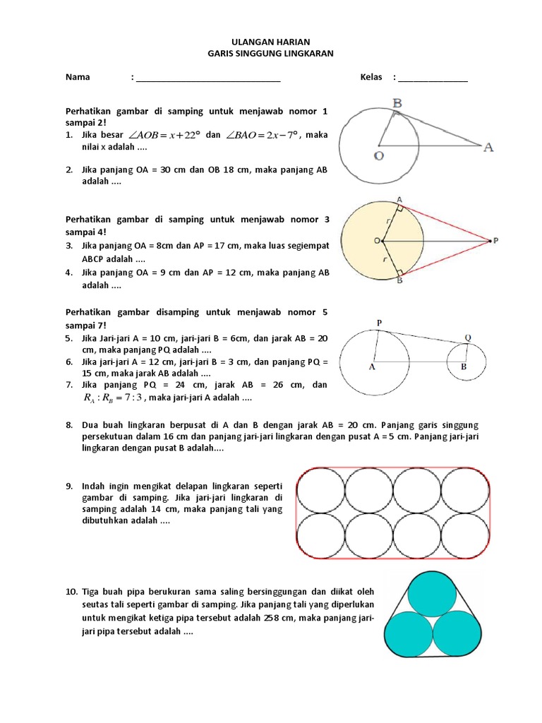 Latihan Soal Matematika Kelas 8 Lingkaran Sekian rangkuman yang dapat Admin bagikan kali ini tentang Matematika Kelas 8 Lingkaran. LATIHAN SOAL ULANGAN HARIAN MATERI GARIS SINGGUNG LINGKARAN Widi Monday 8 March 2021 Hai adik-adik ajar hitung. Seperti biasanya kali ini ada soal baru untuk kamu kerjakan dari rumah.
