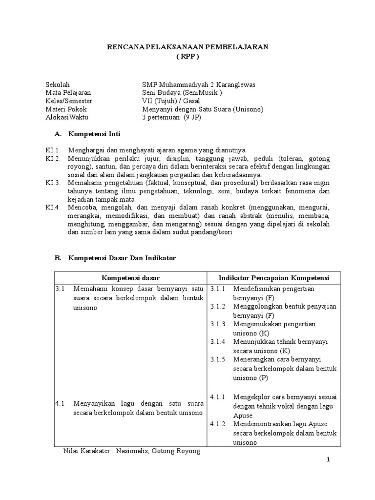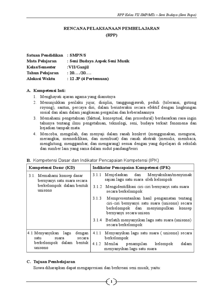 Walaupun hanya ada satu jenis soal yang kami bagikan tentang seni musik namun dengan banyaknya soal seni musik yang akan kami bagikan akan dapat meningkatkan pengetahuan anda tentang seni musik. Setiap satuan pendidikan selain wajib melakukan perencanaan dan proses pembelajaran juga perlu melakukan penilaian hasil pembelajaran sebagai upaya terlaksananya proses pembelajaran yang efektif dan efisien. RPP SENI BUDAYA SENI MUSIK KLS 8 PERTEMU 1 12 0 7 1.