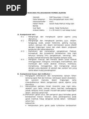 Doc Rpp Gerak Pada Tumbuhan Microteaching Smp 8 1 Ade Idrus Academia Edu