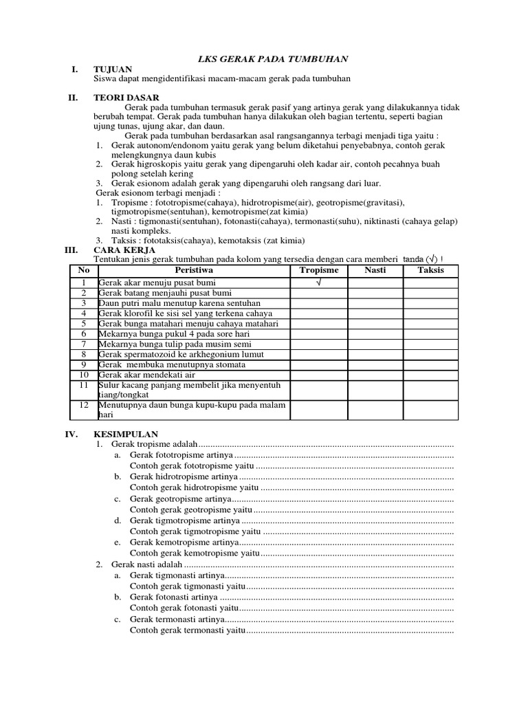 Soal Sistem Gerak Pada Tumbuhuan Kelas 8 Pdf