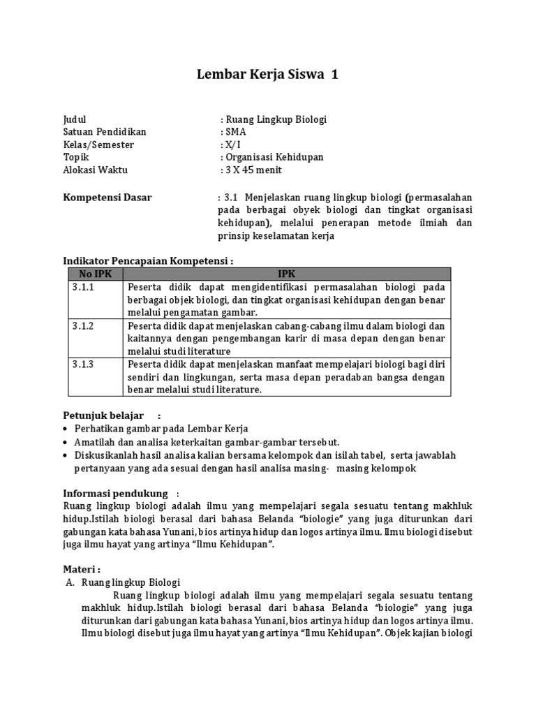 Doc Lembar Kerja Peserta Didik Biologi Metode Ilmiah Kelas X Sma Echy Morank Academia Edu